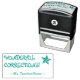 Este design de carimbo encorajador apresenta a inspiradora mensagem de feedback "WONDERFUL CORRECTIONS!" e o nome de um tutor personalizado. Ele também apresenta uma forma decorativa de estrela. Pode ser usado por um professor, educador ou orientador ao marcar trabalhos, para indicar que o aluno fez um trabalho de excelente.