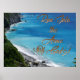 Paisagem maravilhosa ao longo da borda do oceano com penhascos. Tem "Corra nas Armas de Deus". Esta poster será um lembrete de que todos os seus bons tempos e maus tempos correram para Deus!