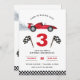 Correndo até 3 com este Convite de festas aniversário de 3 anos de carro de corrida vermelho.