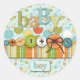 Bebê-menino, letras de aparência miniatura sobre pinos de fralda novidade impressão e coordenação de impressões de pontos e faixas com botões de aparência 3D e um toque suturado.