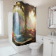 Uma fonte maravilhosa em meio a um jardim com flores, e o sol se pondo ao fundo.