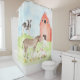 Cortina de chuveiro de animais da fazenda infantil com adoráveis animais em aquarela e celeiro em um fundo de céu e grama em aquarela. Esta cortina de chuveiro de animais da fazenda é facilmente personalizada com o texto de sua escolha.