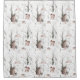 Um padrão de animais da floresta que inclui um urso, coelho coelho, ouriço e coruja colocado numa cortina branca de chá de fundo. Visite nosso compro para ver nossa bela seleção de cortinas de chá com conjuntos de toalhas de banho correspondentes.
