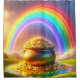 Esta cortina de chá tem um arco-íris e um tesouro nela.