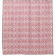 Esta cortina de chá tem um design de deco de arte que sobrepõe os diamantes em rosa num campo de branco.