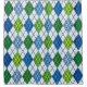 Esta cortina de chá tem um design de deco de arte de formas de diamante feitas a partir de ângulos sobrepostos em linhas pretas coloridas em tons de azul e verde com linhas pretas diagonais fazer de design