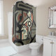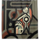 Um simples gatinho do estilo "deco" geométrico em laranja, cinza, creme e preto.