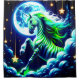 Esta cortina mística de chá tem uma cena de unicórnio listrado verde artístico nela.