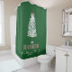 Esta Árvore de Natal de Alumínio Verde tem uma árvore de Natal de alumínio retrorreflectora no centro com ornamentos vermelhos e verdes e estrela vermelha no topo, tudo em um estouro e fundo vermelho atômico. Personalize a cortina de chá com sua própria mensagem de feriado para iluminar sua decoração natal para a época de Natal.