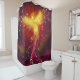 Uma cortina de chá que caracteriza uma ascensão de phoenix em um fundo roxo.