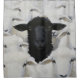 Esta obra de arte instigante transmite uma poderosa metáfora visual sobre individualidade, identidade e coragem. Uma única ovelha preta está no centro de um mar de rostos brancos, encontrando o olhar do espectador com confiança silenciosa. O contraste é marcante, mas elegante, chamando a atenção imediata para a ideia de ser diferente enquanto se está cercado pela mesmice.