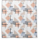 Esta cortina de chá tem um design Bauhaus de repetição de retângulos, quadrados, diamantes e triângulos em cores de praia de bronzeado, cinza, azul e laranja.