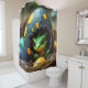 Esta cortina de fantasia tem um dragão de bebê verde a eclodir.