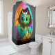 Esta cortina de chá tem um dragão de bebê fofo num ovo colorido nele fotografado.