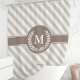 Melhore a decoração do banheiro com esta cortina de chá roliçada bege e mocha com um monograma de louros. As listras clássicas e o design elegante de louros criam um toque sofisticado e personalizado em qualquer banheiro. Criada a partir de tecido de alta qualidade, essa cortina garante durabilidade e fácil manutenção, fazer-a como a escolha ideal para as configurações modernas e na moda de banheiro.