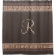 Design do ornamento da beira da chave do grego elegante, clássico do meandro com monograma e decoração geométrica das listras no fundo do marrom escuro. Grande ideia para aniversários, Natal do presente ou para surpreender apenas seu amado. É fácil personalizá-lo e mudar a cor do fundo para adicionar o diferente ao design com sua escolha.