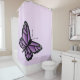Esta cortina de chá apresenta uma ilustração de uma linda borboleta roxa numa cor de fundo lilática.