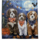 Libere o espírito assustador com esta design sombria do Dia das Bruxas apresentando um bando de cachorros sob um céu escuro e iluminado, cercado por morcegos voadores e abóboras brilhantes. Perfeito para aqueles que amam um toque de diversão terrível com seus amigos peludos!