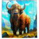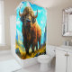 Esta cortina de chá tem uma bisão de desenho desenhado nela.