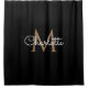 Chic black and gold monogram shower curtain. You can personalize the name, monogram and customize the font and colors to create your own unique design. Designed by Thisisnotme©