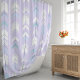 Adicione um toque de boho chic ao seu banheiro com esta cortina de chuveiro trendy com um padrão minimalista de setas em tons de roxo pastel, azul e branco. O design geométrico cria uma atmosfera calma e serena, perfeita para relaxar após um longo dia. Feita de tecido de alta qualidade e resistente à água, esta cortina de chuveiro é estilosa e funcional.