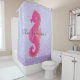 Bonito cavalo de mar rosa sobre fundo abstrato roxo.