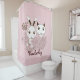 O design do produto apresenta um belo coelho e gatinho com flores cor-de-rosa. Este desenho animado bonito faz uma cortina de chá única e bonita com texto personalizado para o banheiro infantil.