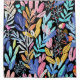 Um padrão floral colorido com folhas e flores tropicais, criando um design vibrante e vivo