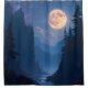 Uma lua cheia luminosa ilumina uma paisagem montanhosa serena, lançando um brilho suave sobre o rio tranquilo abaixo. Pinheiros silhuetados enquadram a cena, adicionando profundidade e contraste ao céu noturno salpicado de estrelas.