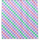 A vibrant checkerboard pattern featuring alternating pastel purple, pink, and green squares against a white background, creating a playful, colorful effect.