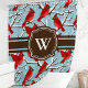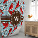 Traga a beleza do inverno para dentro de casa com esta encantadora cortina de chuveiro com um padrão encantador de cardeais vermelhos empoleirados em galhos cobertos de neve. O fundo azul sereno e a inicial personalizável criam um toque personalizado para a decoração do seu banheiro.