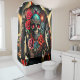 Esta cortina de chá tem uma jaqueta legal no crânio.