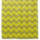 Uma cortina de chá colorida, com um design de fretão verde e chartreme, formando um padrão de ziguezague para adicionar um olhar contemporâneo ao seu banheiro.