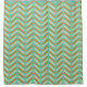 Esta cortina de chá tem um design quevron da década de 1970 em cor de laranja retrorada e branco num campo de azul.