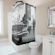 Cortina Para Box Cidade de Pessoas de Carro Velhas, Monocromáticas,