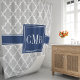 Melhore a decoração da casa de banho com esta cinza elegante e marinho azul de chá marroquina. O intricado design geométrico, aliado a um monograma quadrado personalizável, acrescenta um toque sofisticado e pessoal a qualquer banheiro. Feita a partir de tecido de alta qualidade, essa cortina garante durabilidade e fácil manutenção, fazer-a perfeita para as configurações modernas e na moda de banheiro.