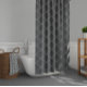Esta cortina de chá escura apresenta uma cor damasco moderna em cinzas e preto. Personalize a cor de fundo clicando em Editar design.