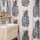 Cortina Para Box Cinzas Tropicais e Pineanás Rosa Padrão Sem Costur