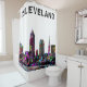 O estilo de rua trabalho de arte está em tendências na moda doméstica. Esta divertida obra de arte mostra a cidade de Cleveland, Ohio coberta de grafite. Escolha uma cor de fundo diferente para complementar a decoração do banheiro.