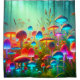 Esta cortina de chá tem uma cena de cogumelo nela.