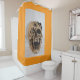 Uma fotografia de um crânio com um escorpião no seu armário numa Cortina de Chá. Isso é brilhante e colorido.
