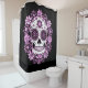 O crânio de açúcar Dia de los Muertos em tons coloridos de roxo cercado por flores.