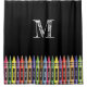 Fundo preto com giz multicolorido em uma linha na parte inferior. Personalize com um monograma branco grande no centro. Em cada lápis, personalize com um nome. Que fofo! Altere a fonte, a cor da fonte ou o plano de fundo, se desejar. Muito fácil!