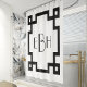 Cortina Para Box Deco Monograma Branco Preto Limite Grego