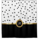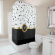A cortina de chá do banheiro clássico em um design de monograma você pode personalizar com seu próprio nome de família inicial. Projetado em ouro, preto e branco com um padrão pokadot de na moda e tendência. Adiciona um toque de classe a qualquer decoração do banheiro.