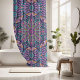 decoração colorida do banheiro, cortina geométrica de chá, design de arte abstrato, acessórios modernos do lar, decoração vibrante do banho, cortinas únicas do chá, design de banheiro contemporâneo, decoração colorida do lar, acessórios do banheiro artístico, cortina de chá funk