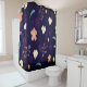 Flores brancas e cor-de-rosa com galhos sobre fundo azul escuro.