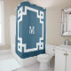 Design monograma com decoração de borda chave grega sobre fundo azul verde