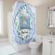 Esta cortina de chuveiro apresenta uma história em quadrinhos original de painel único do mundo de Toe's Town.