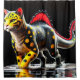 Esta cortina de chá tem uma criatura de dinossauro nela.